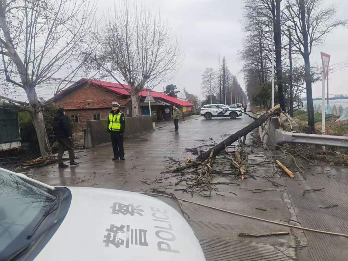 除夕日上午9时许,青山区交管大队民警在辖区巡查时发现,绿色路白玉时光公园门口出现树木被风吹断、一段电缆挂断脱落的情况,现场交通因此受阻。险情发生后,青山大队八中队迅速反应,立即增派警力赶赴现场。民警们一方面积极疏导交通,指挥过往车辆有序通行,避免交通拥堵进一步加剧;另一方面,及时通知园林、电力等相关部门到场处置。在各方的协同努力下,10时14分,现场交通恢复正常,及时消除了安全隐患,保障了道路的安全与畅通。