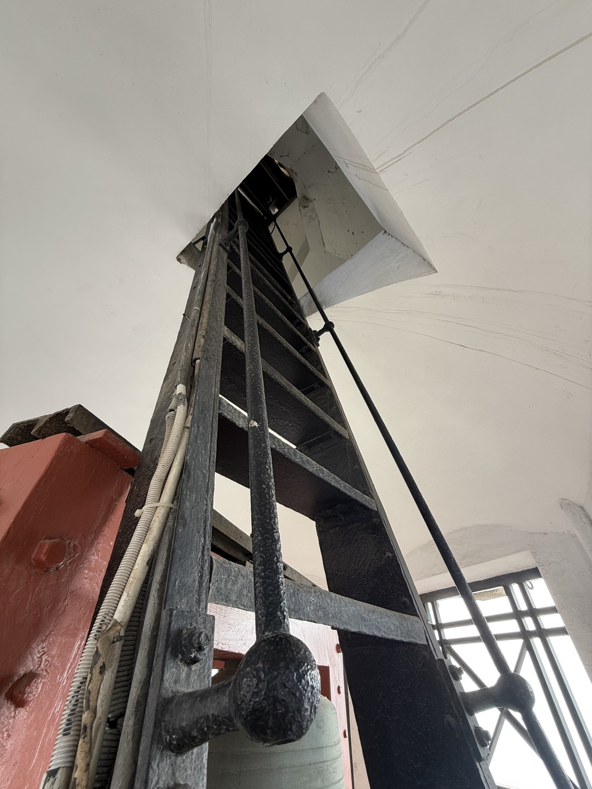 江汉关钟楼是一个定制化产品,放眼全国,像这种规模的机械钟楼也没有几个。塔钟内部有五层,每层越往上走空间越窄,由逼窄陡峭的铁梯架相连。有的角度近乎九十度,攀爬时身体几乎悬空。张主锋却如履平地,每天都要上去看看钟楼的状况——不是不惧危险,而是不敢懈怠。
