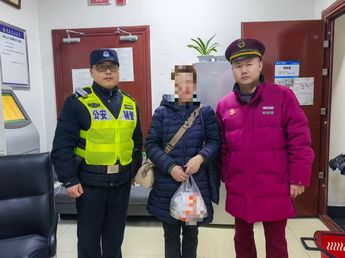 2月15日,一名乘客不慎将挎包遗失在地铁站安检机处,包内有现金5900元,黄金首饰50克以及证件、化妆品若干,总价值6万余元。民警王学军、辅警胡亚西接到求助后,根据包内的证件信息展开多方查询,半小时就联系上失主王女士。接到警察电话的那一刻,王女士感激地说:“要不是你们打电话给我,我都不知道过安检没有拿包,谢谢你们!”