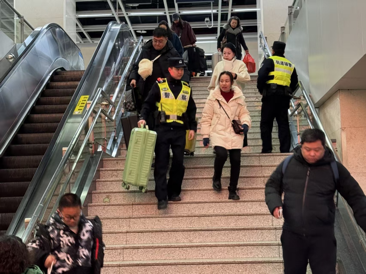 2月16日8时许,伴随着一趟趟列车到站,地铁2号线汉口火车站迎来一波客流小高峰。警灯闪烁之处,民警章子晗正带队在站内巡逻。途中遇有乘客求助,他主动停下提供帮助。