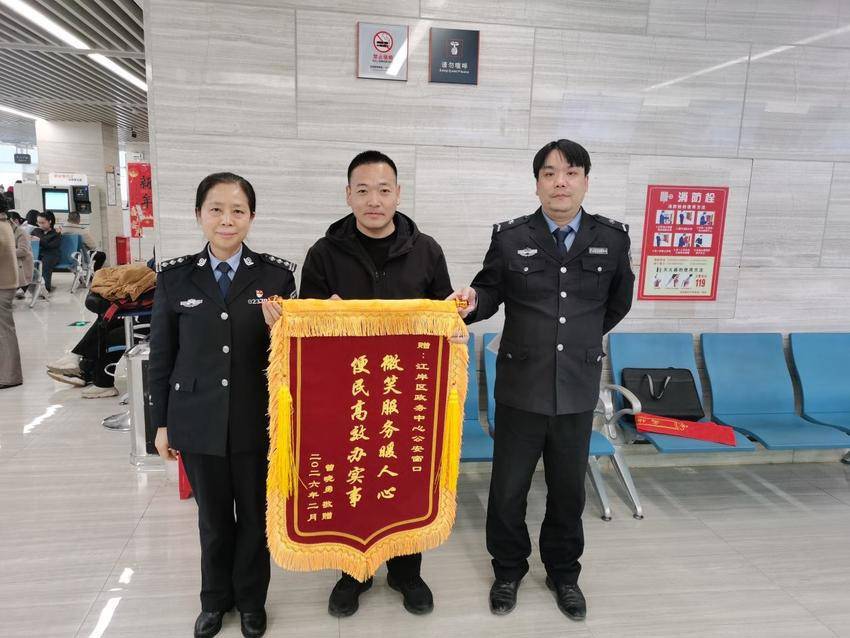 春节前夕,一面印着“微笑服务暖人心便民高效办实事”的锦旗,送到了江岸区政务服务中心公安窗口。送锦旗的曾先生,心里悬了许久的石头终于落了地。孩子即将入学,急需办理省外户口迁入,他抱着试一试的想法向窗口说明情况后。