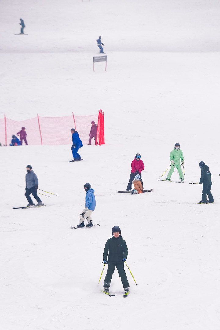 在甘露山国际滑雪场约6万平方米的冰雪王国里,6条不同难度雪道全开,73米垂直高差、400米超长雪道上,滑雪爱好者俯冲驰骋,激起阵阵雪雾。4600平方米娱雪乐园内,玫瑰雪圈道、超长冰滑梯等项目前排起长队,欢笑声不绝于耳。