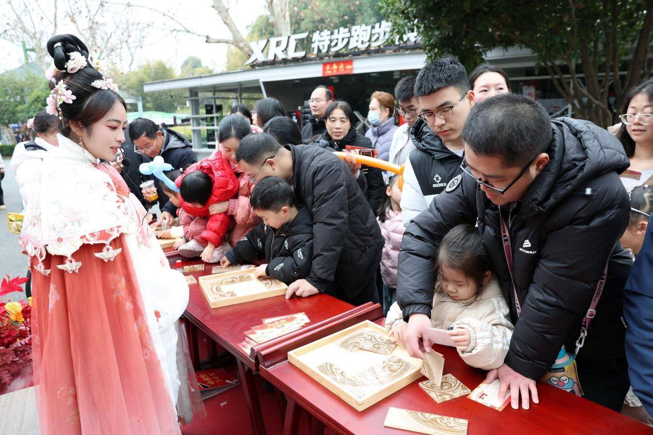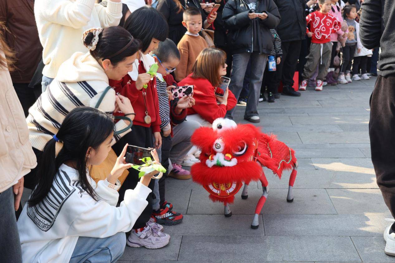 这场“骏马奔腾·Yue东湖”新春系列活动,正是东湖文旅集团将传统文化与智能科技深度融合的一次创新尝试。除了机器狗舞狮,现场还有沉浸式“东湖花里”年宵花市、楚风文创市集、楚文化主题树画等多元场景。身着楚风深衣的“卖花郎”肩挎竹篓穿行花市,成为一道流动的楚韵风景线;糖画、投壶等传统非遗摊位前同样人气火爆,孩子们目不转睛地看着手艺人以糖作画,仿佛穿越回旧时年节。