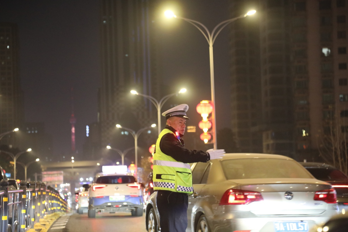 处理完纠纷后,唐操马不停蹄赶到航空路立交桥上疏导:“除夕晚上8、9点钟,有一波年夜饭散场的车流高峰,12点前后又有一波上香的高峰,群众出门都带着图吉利、求平安的心态,所以我们的工作要格外耐心细致,多为他们着想。”满街的红灯笼闪着亮光,把他的脸庞也映照得通红。