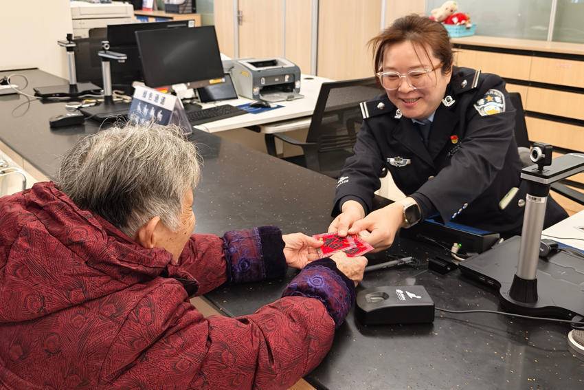 接待陈女士的是政务服务大队“海燕直通车”工作室民警方倩、辅警屠文莉。材料审核、信息核验、迁移办理,一整套流程不到10分钟就办理完成。拿着刚打印出来的户口本,陈女士不禁为公安办证高效服务点赞。