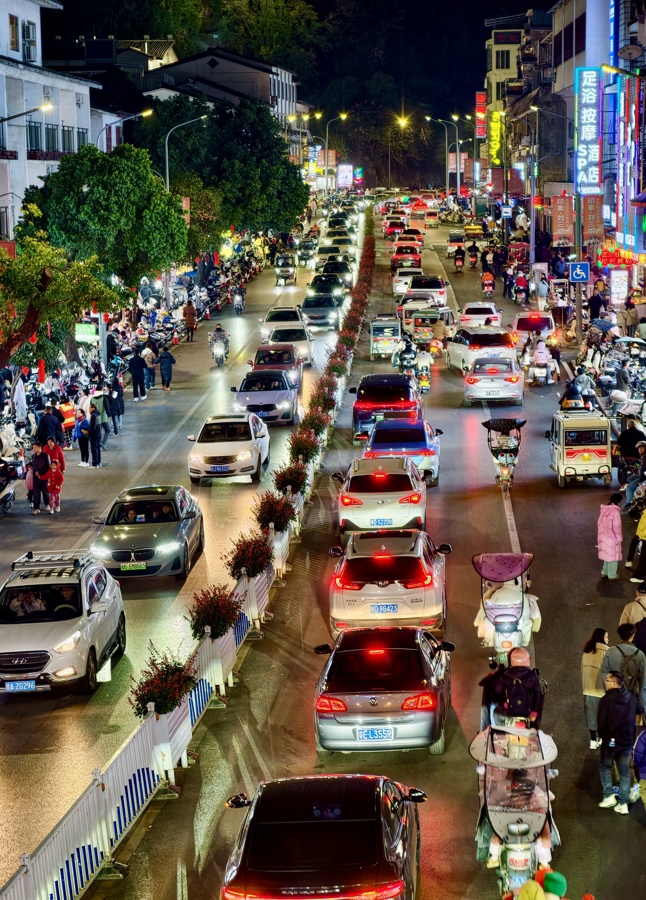 2月17日(农历大年初一)晚,广西桂林阳朔西街灯火璀璨、人头攒动,浓厚的新春氛围扑面而来。作为阳朔最具人气的文旅街区,当晚西街迎来客流高峰,市民与各地游客摩肩接踵,在山水与烟火间共度喜庆佳节。