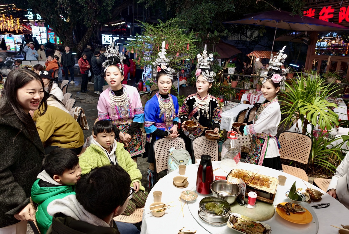 青山为幕、灯火为伴,游客们赏西街夜景、观民俗表演、品桂北美味,处处洋溢着欢乐祥和。不少市民表示,今年春节人气旺、活动多,传统年味十足,既感受到家乡的热闹,也向八方来客展现了阳朔的新春魅力。