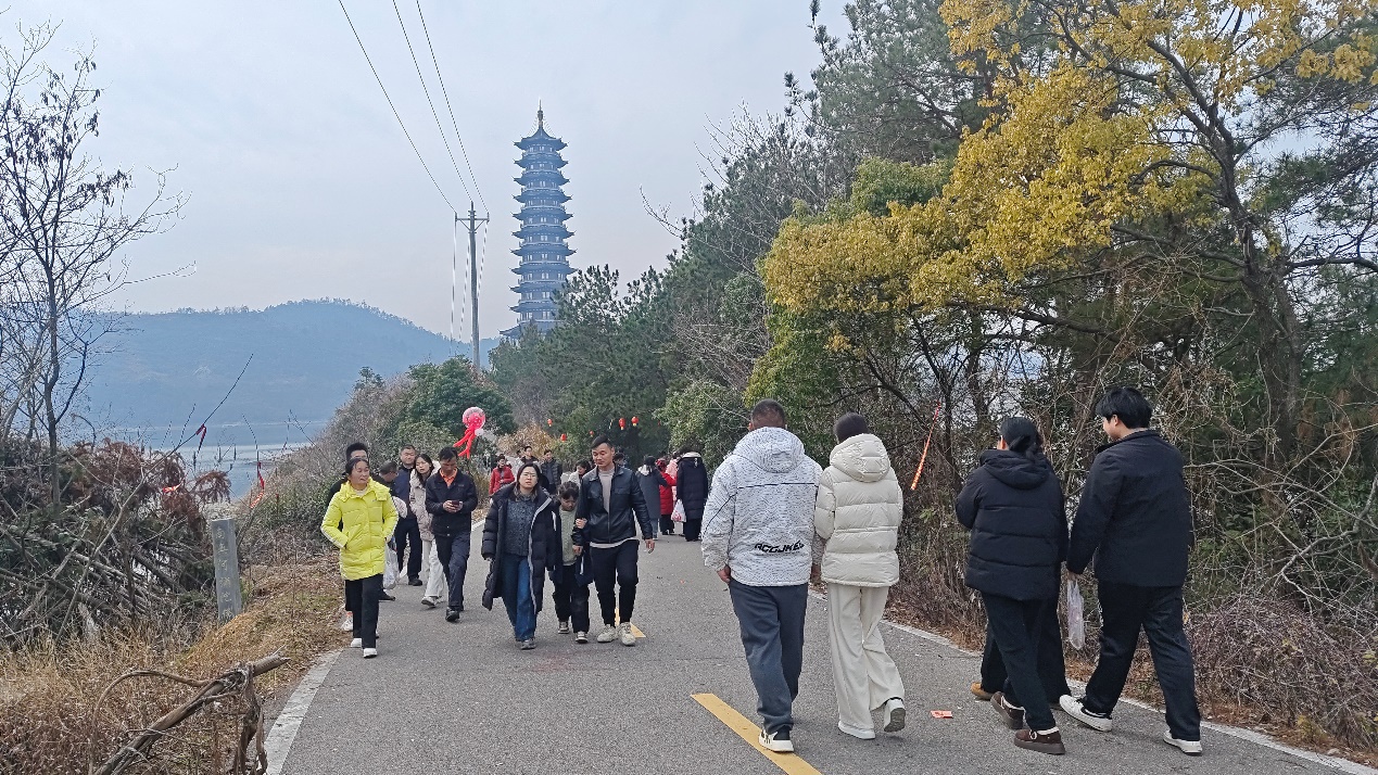2月18日大年初二,来到武汉市新洲道观河风景区赏景的市民络绎不绝。风景区报恩广场停了3000多台私家车,1.5万市民游览报恩禅寺、登万佛宝塔赏道观河风景区美景。新洲公安民警在此重点守护,景区热闹而秩序井然。