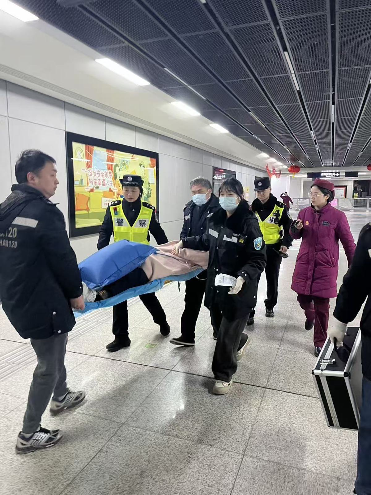 针对春节期间地铁迎来较大客流,轨道分局全面优化重点站点、换乘枢纽警力部署,加密巡逻防控频次,完善“1、3、5分钟”快反处置机制,全力保障市民轨道交通出行安全。大年初一中午,地铁2号线武汉东站内,一名女乘客突然晕倒,接到求助后民警张晶和辅警孔涛立即携带医疗箱到场支援,一边疏散围观群众、搭建临时救助空间,一边关注当事人身体状况,120抵达后,民警不仅全程协助送医,还主动垫付了200元救护车费用,交接好所有事宜才返回岗位继续执勤。