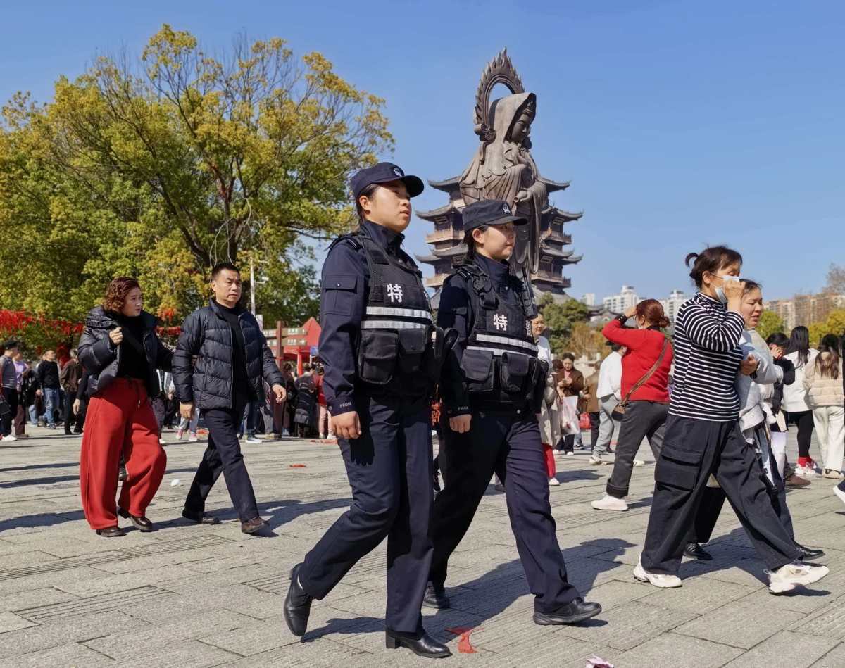 当天,在熙攘的人潮中,一抹抹藏蓝身影和闪烁的警灯格外醒目。“香火不要在场外点燃,请直接投入广场燃香池!”在敬香池旁,汉阳分局龙阳街派出所民警李宇博不断引导香客文明敬香。不远处的6号门出口,老民警魏继祥目光如炬,随时准备为游客提供帮助。“参加了30多年的春节执勤,今年是站最后一班岗,心里特别踏实。”魏继祥说。