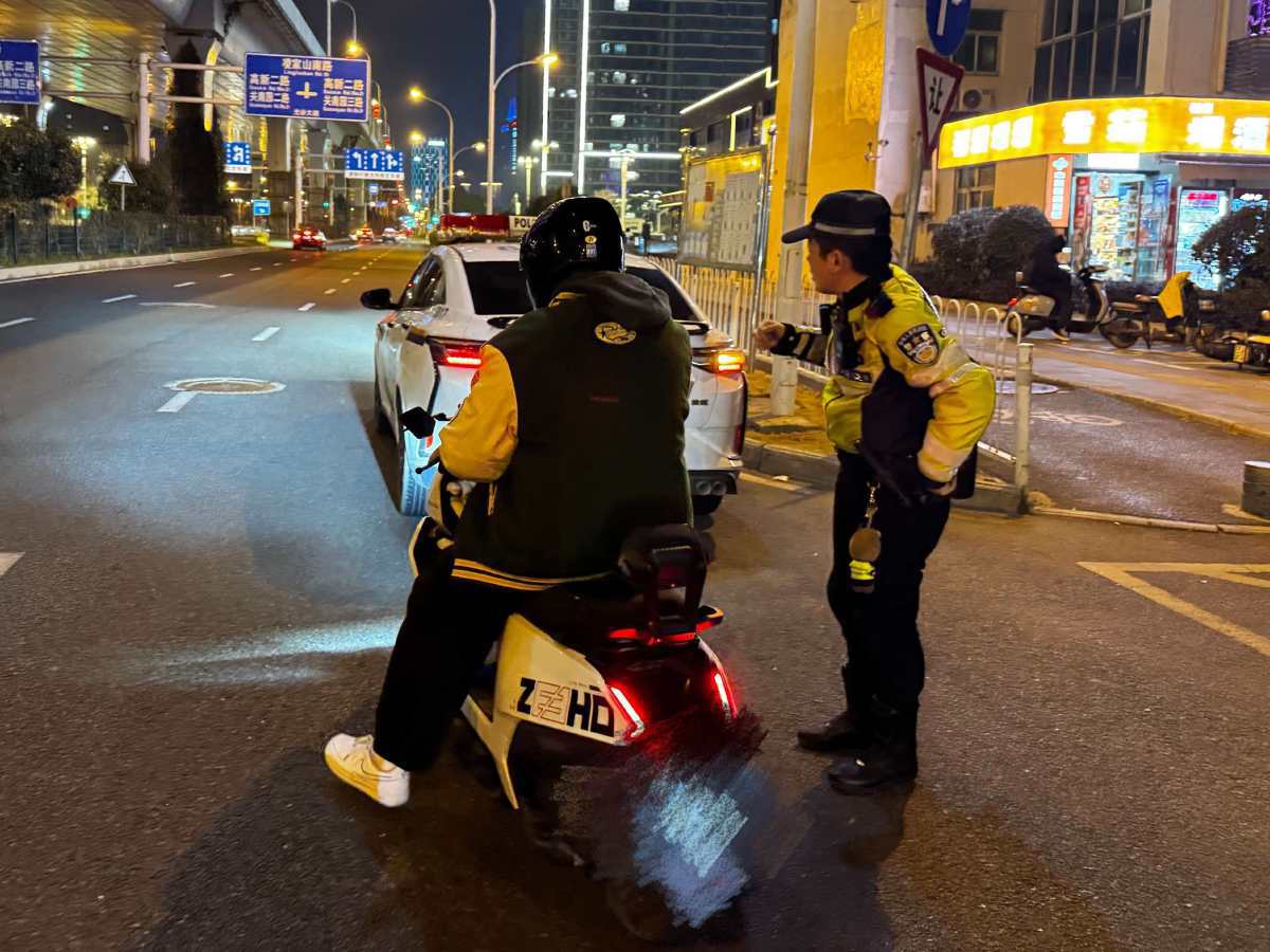 当晚,东湖高新区交通大队第三警务站汉警快骑队员陶柄桦、陈尧正在此路段开展夜间巡逻,发现一辆电动车停在高架导流线内,一名男子站在车旁神色焦急、手足无措。此时高架上车辆川流不息,情况十分危险。