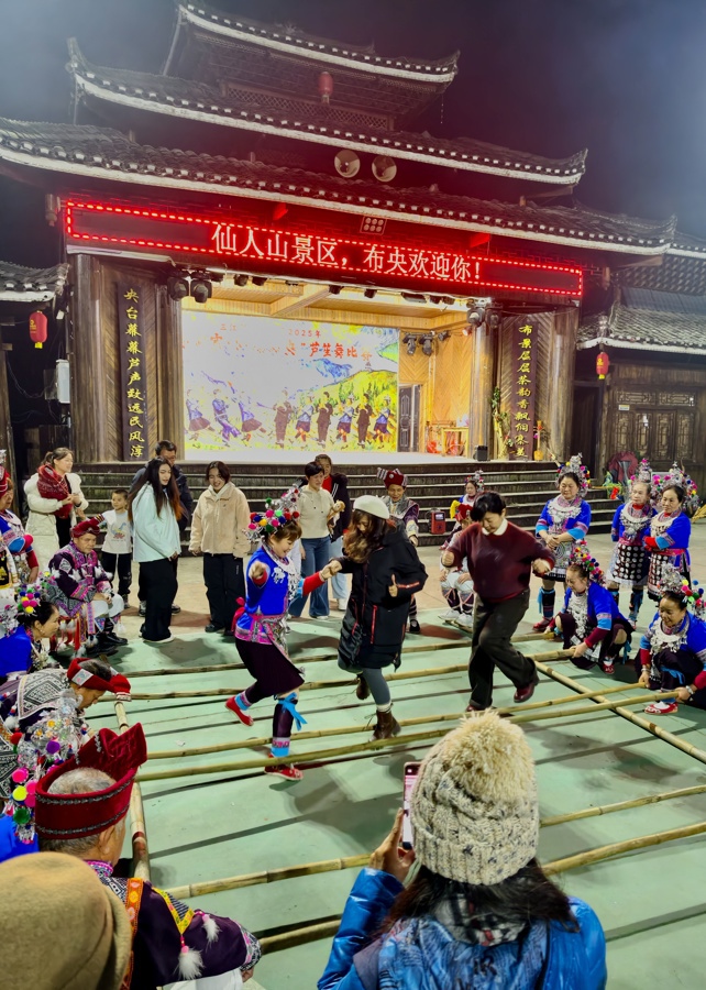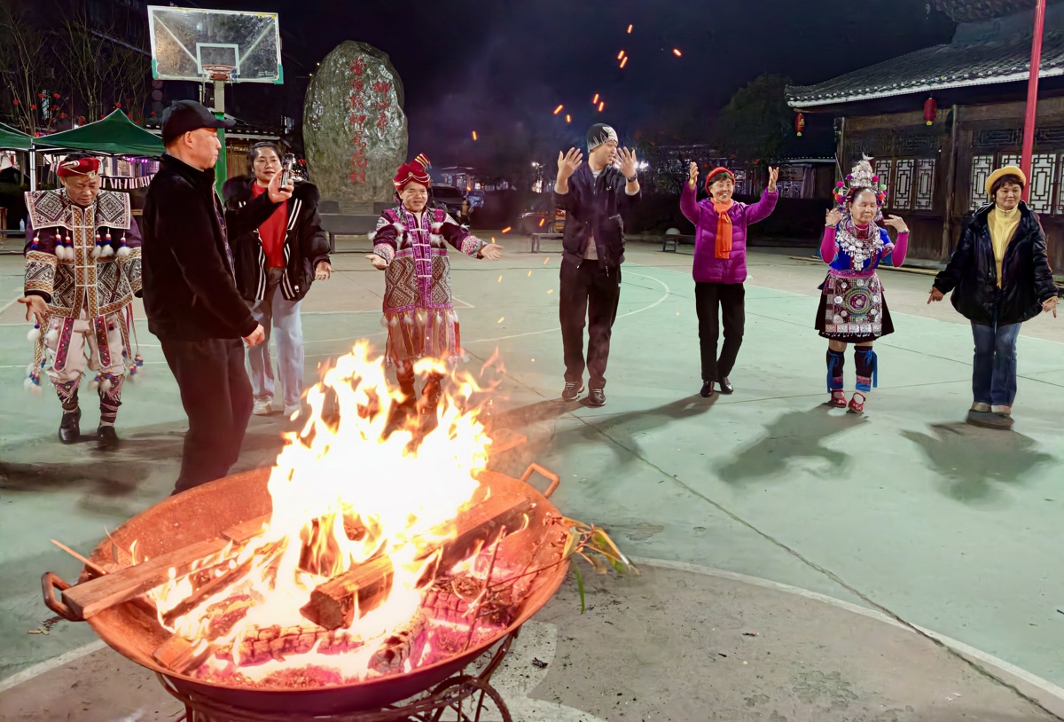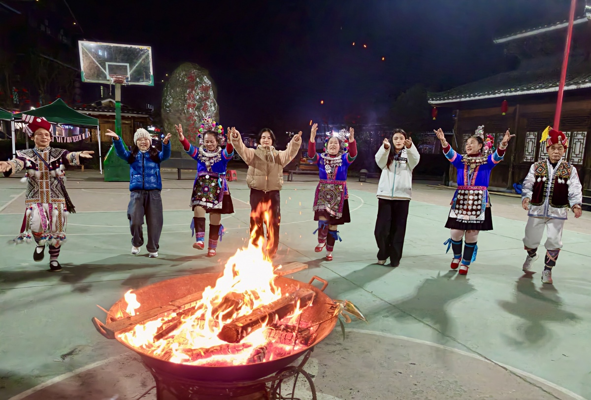2月21日晚,地处湘黔桂三省交界处的柳州市三江侗族自治县布央多耶广场灯火璀璨、热闹非凡。熊熊篝火在春风中摇曳,三江鼓楼芦笙文艺队身着民族盛装,为来自全国各地的游客献上一场原汁原味的侗族民俗盛宴,共庆新春佳节。
