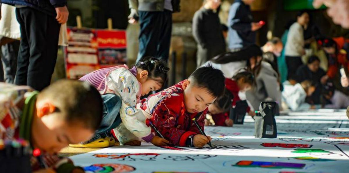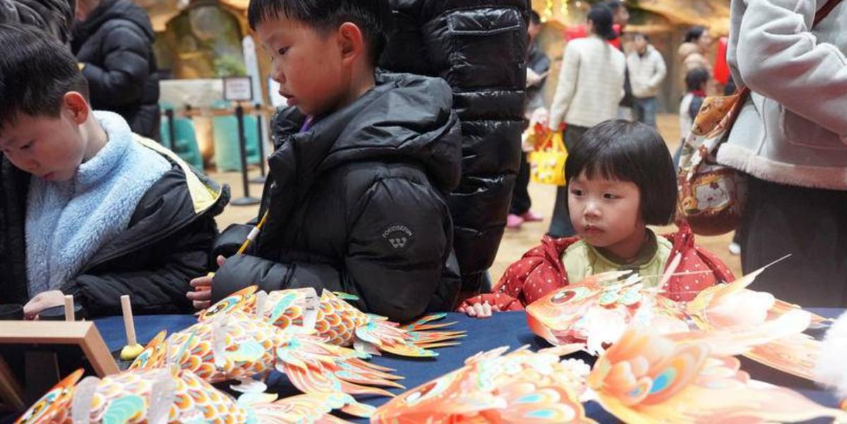 白天的乐园,传统年俗与创意互动碰撞出别样火花。十米长的“好大一福画”前,数百名游客齐聚一堂,共同挥毫写福字、画小马,用笔墨勾勒新春美好;午后的春节主题巡游热闹开启,财神、醒狮穿梭园区,派发“金币巧克力”,孩子们争相互动,园区内欢声笑语不断。新春手作区里,家长与孩子携手制作迷你醒狮头、绘制鱼灯,将亲手打造的“年味”带回家,在互动中感受团圆温情。