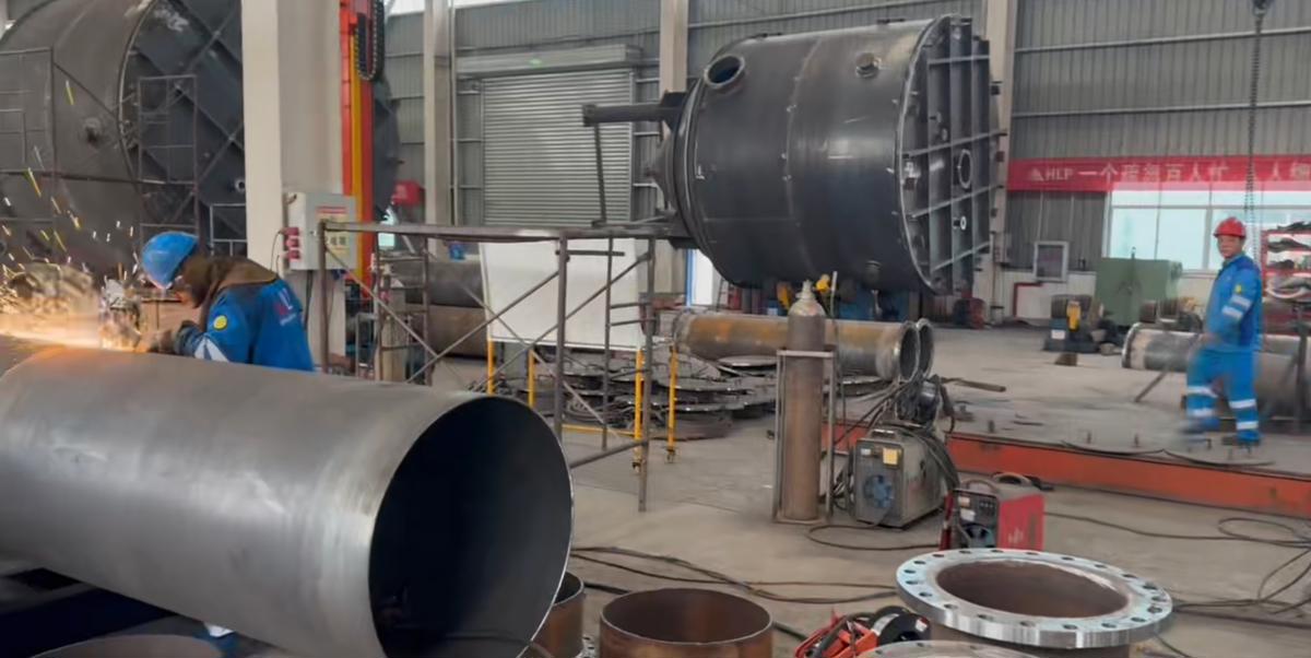 人勤春来早,实干正当时。大年初七,春节的喜庆氛围尚未消散,武汉华利浦防腐工程有限公司生产基地内已是一片繁忙景象:机械轰鸣、焊花闪烁,工人们各司其职,有的对即将发运的设备进行最后检查,有的配合行车将巨大的耐腐蚀构件有序吊运装车,全力跑出新春“加速度”。