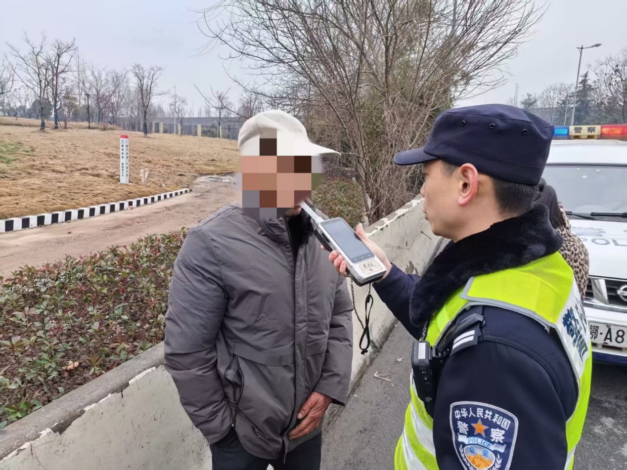 2月17日(大年初一)8时许,青山交警熊磊、薛凯在和平立交工人村匝道口附近进行交通安全检查,发现一辆面包车驾驶员身上散发出酒味。