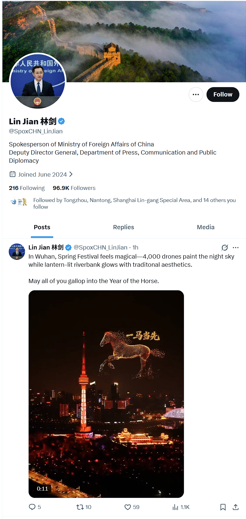 中国外交部发言人林剑