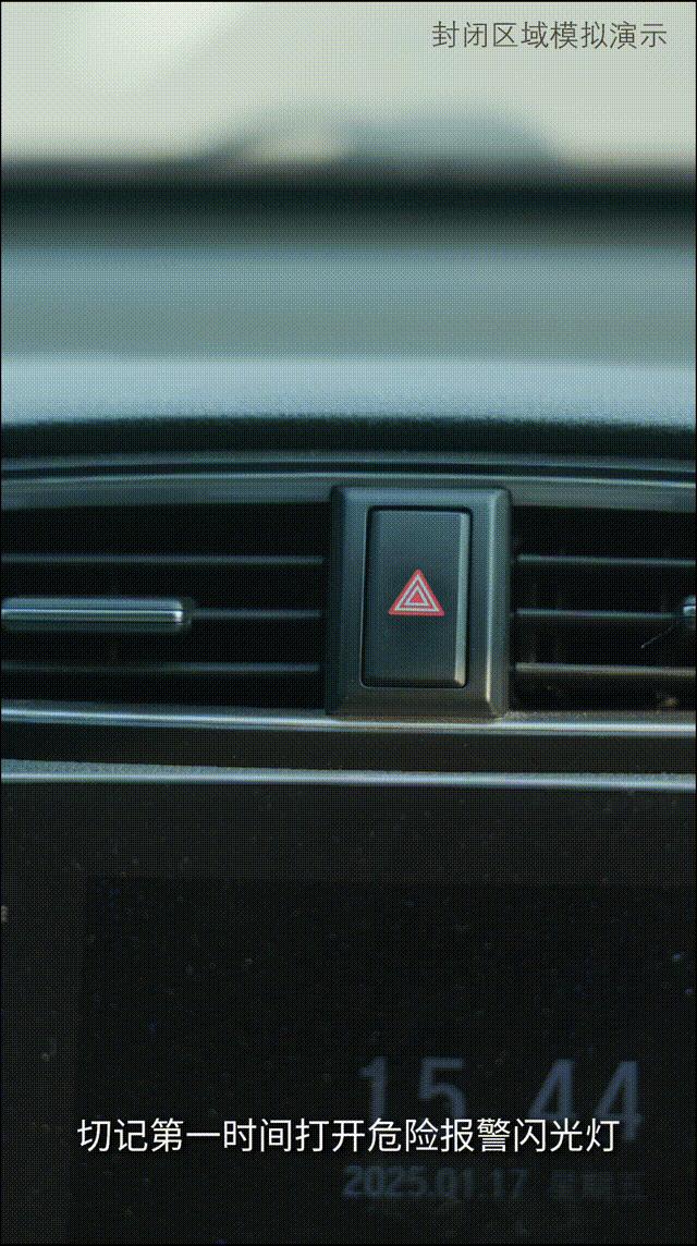 2.人撤离。车上人员撤离至安全区域后,请立即取出三角警示牌并规范摆放,警示后方来车注意避让。