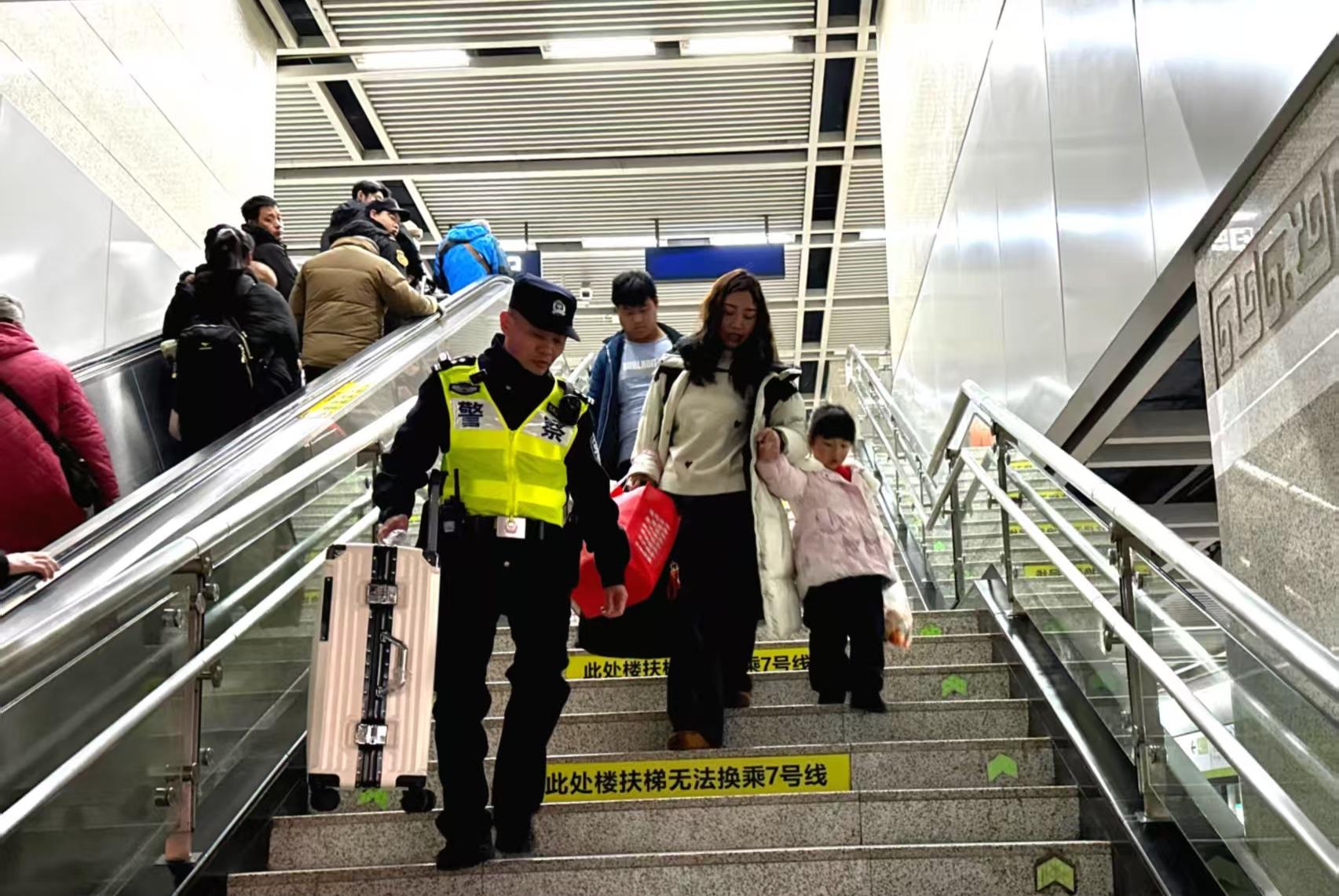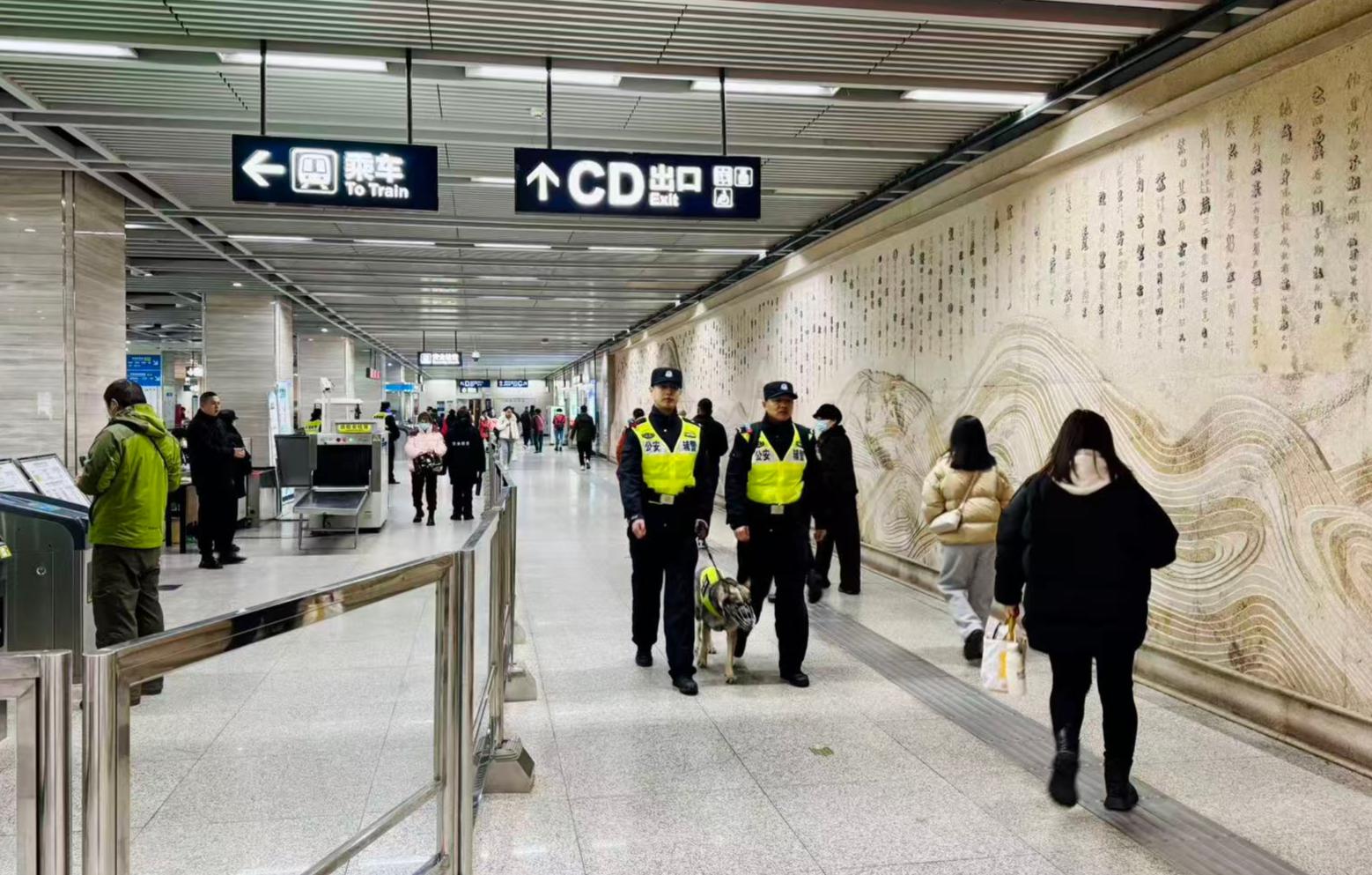 春节期间,武汉轨道公安紧盯“三站一场”、重点寺观等周边地铁站,在常态勤务的基础上叠加投入警力,持续强化客流疏导、秩序维护和服务乘客等工作。提前与地铁运营公司搞好对接协调,布设硬质隔离设施,规范进出闸机通道,防止出现乘客拥挤、滞留情况。紧盯早、晚高峰等重点时段和站台、车厢等重点部位,加大巡逻频次和力度,努力让市民群众感受到安全就在身边,平安就在眼前。充分发挥“江城义警——平安地铁联盟”作用,全面排查整治各类风险隐患,畅通警企联动处置机制,确保轨道交通运行安全。