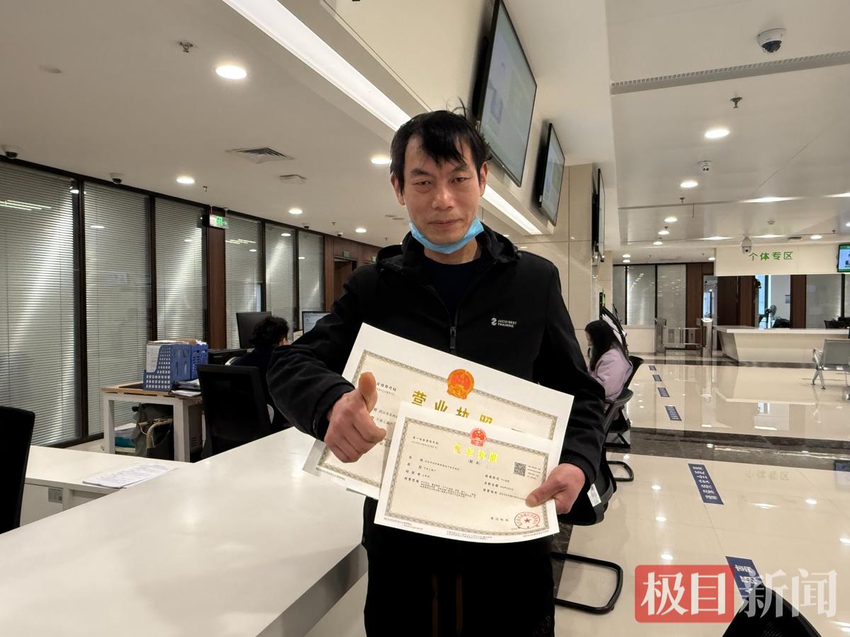 三楼的企业办事窗口同样忙碌。来自安徽的王先生和妻子昨天专程从安庆赶到武汉,就为了在开工第一天顺利办好新的营业执照。夫妻俩在武汉生活了20多年,两年前来到东西湖加盟经营一家早餐店,主要做包子、小吃。今年他们计划开辟线上业务,上线外卖平台,需要办理营业执照变更手续,同时还想办理经营者变更手续。从9点开始办理业务,10点左右,王先生便顺利拿到了新执照。“新年新气象,希望生意红火!”王先生笑着说。他特别提到,全程都有工作人员引导,每一步都有人指引,非常便捷。