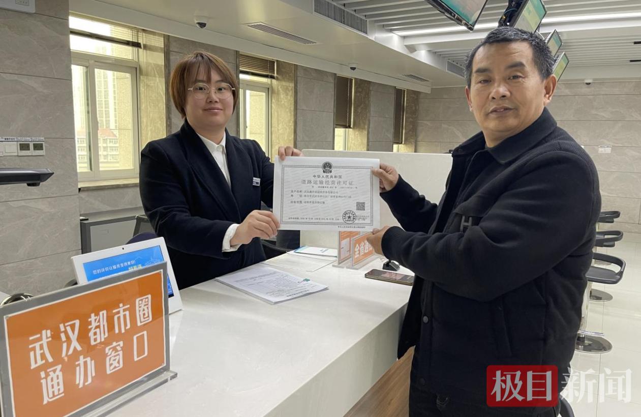 上午9点,郑先生准时来到洪山区政务服务中心七楼建设类审批科窗口,办理道路货物运输经营许可证。在工作人员的引导下,他仅用10分钟就填写完登记资料。半小时后,电子版许可证已生成并发送至湖北省政务服务网。为了方便日后使用,郑先生请工作人员帮忙打印了出来。