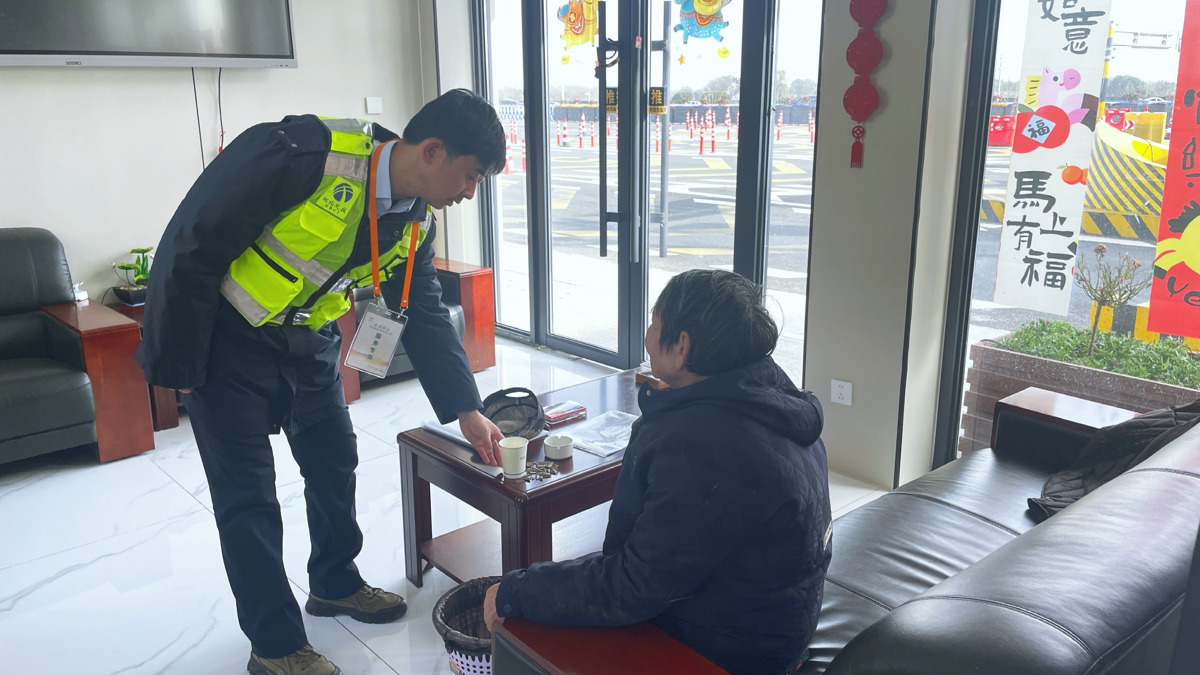 2月22日,正值春节返程高峰,一位七十多岁老人因迷路误入湖北交投京珠运营公司蔡甸收费站入口匝道。因身边不时有车辆通行,现场收费员发现后,随即上前将老人带至站内安全区域休息,并上报监控室。