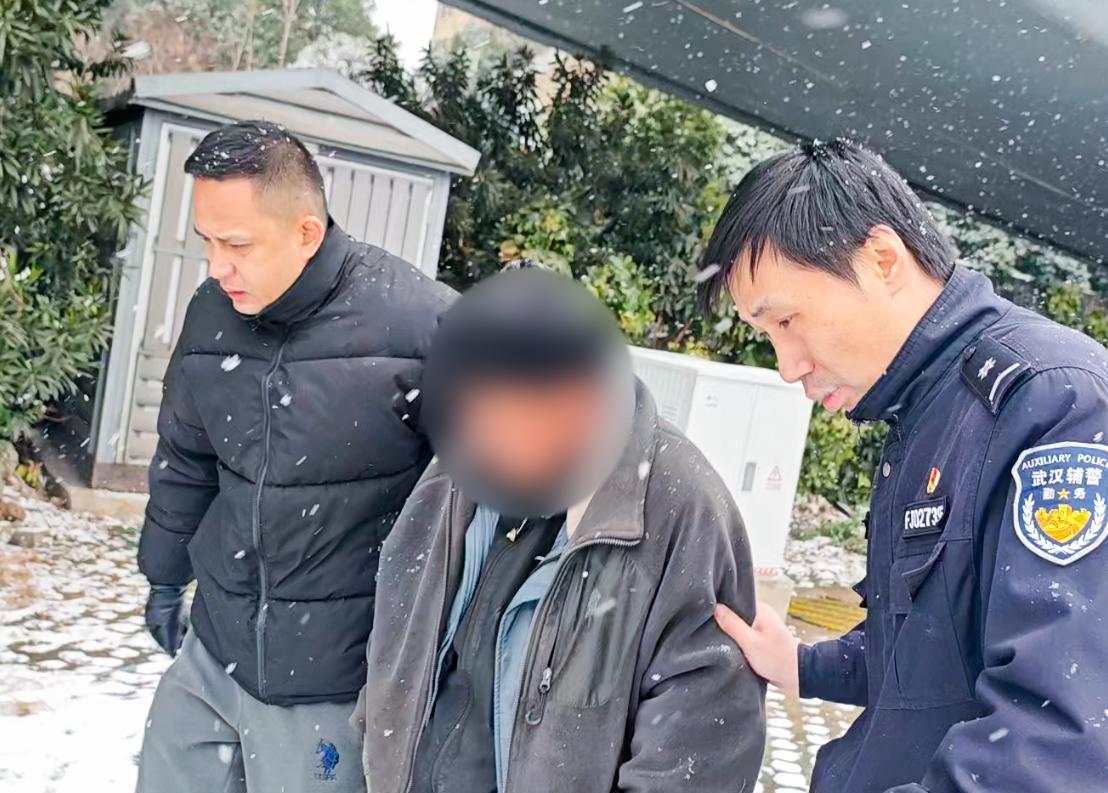 1月20日,强寒潮袭击武汉,气温骤降至零下4摄氏度,漫天飞雪。11时30分,东湖景园警务室民警邱爽、章伟兵带领辅警巡逻至红庙立交高架桥下时,发现一名男子口齿不清、精神恍惚,身上衣物单薄。