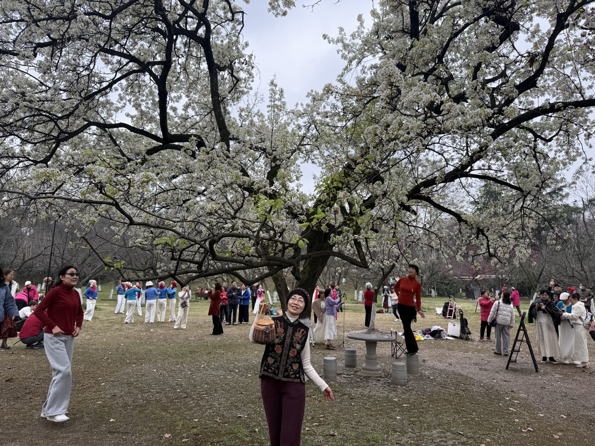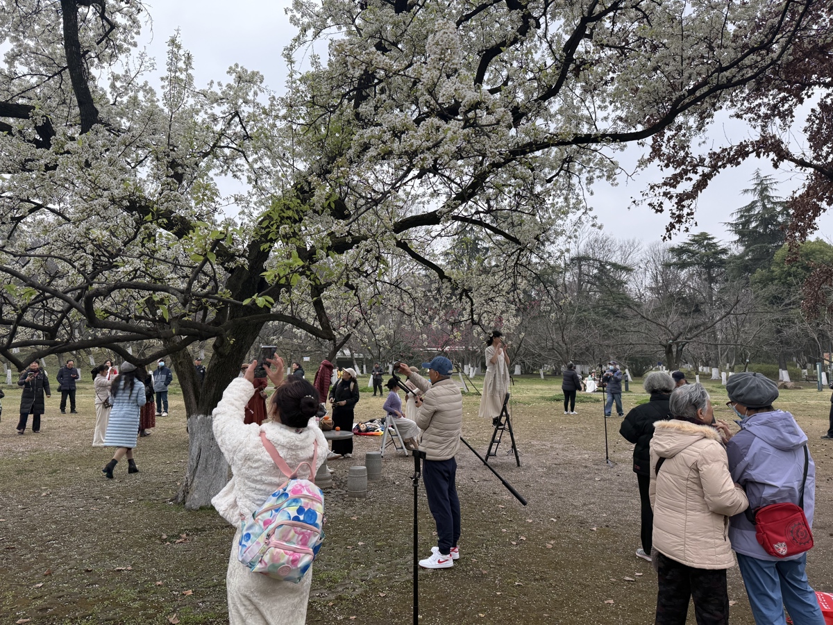 往来的游客们纷纷被这株58岁老梨树的盛景吸引,驻足不前、拍照留念。有人举着手机,定格下满树繁花与老树苍劲枝干的同框画面。不过,现场也有不少市民初见这满树雪白,会误以为是白色的樱花开放,“这不是樱花,是梨花。这种树北方人称之为杜梨,南方人称它为棠梨。花后会结出很小很小的梨子,但是味道干涩,不好吃。”听了工作人员的讲解,这位游客恍然大悟,连声说:“原来是梨花呀,长知识了!”