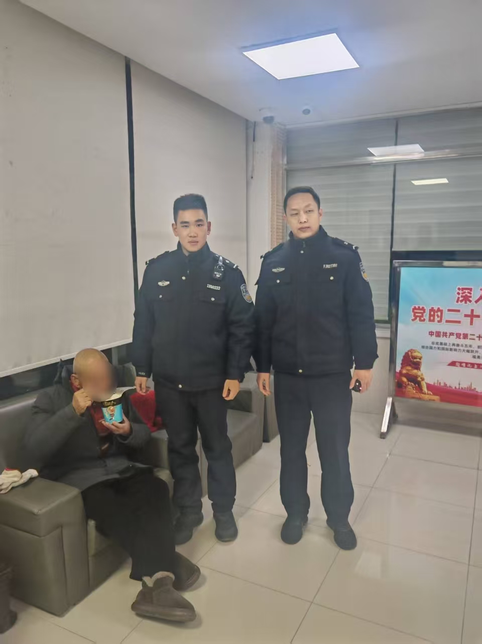 把老人平安送到家时,老人的老伴,徐奶奶紧紧握住浦景铭的手:“谢谢你们,这大过年的,还好有你们的帮助,不然我们可怎么办啊”安顿好老人后,他忍不住写下那条“帅得要命”的朋友圈,这份看起来略带浮夸的“自恋”,其实是一名新警用自己的担当和行动,实实在在帮助到群众后,从心底里流露出的骄傲与自豪。