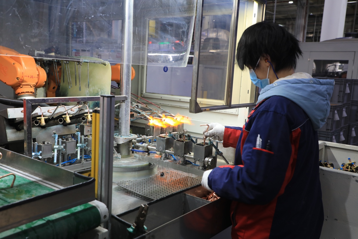2月27日,TCL空调武汉智能制造产业园车间内,操作工王琼芳将截止阀与铜管固定后,机械臂喷出蓝色火焰,实现完美焊接。TCL空调武汉公司相关负责人说,东西湖区城管执法局联合慈惠街道与天然气公司,在春节前顺利完成瓶装气改为管道天然气后,为企业复工复产注入强劲能源动力,助力开年生产“开门红”。
