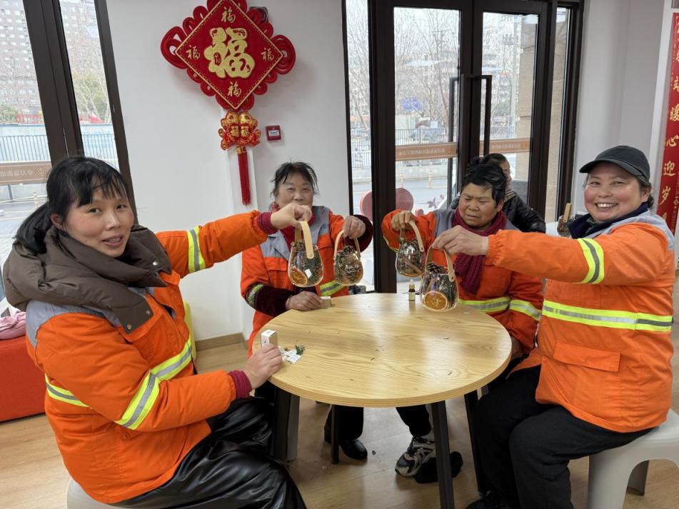 在随后的互动体验环节中,大家精心挑选、巧妙搭配,设计各具特色的无火香薰作品。在沉浸式手工体验中,学习“专注转移”的情绪调节技巧。“学习到了不少情绪调节知识,多多参加活动果然有用。”驿站常客环卫工人张阿姨笑着说。