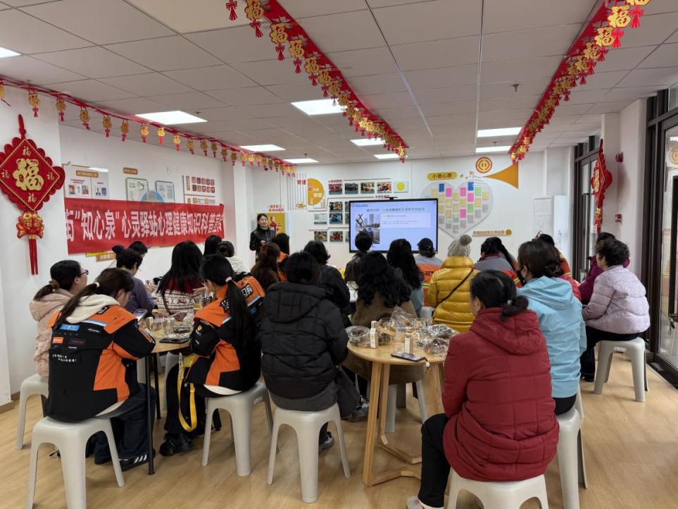 为关爱一线户外工作者心理健康,提升户外职工情绪认知与自我调节能力,2月26日,武汉市洪山区卓刀泉社区江城驿站“心灵减压”第二期活动顺利启幕。本次活动以“锚定·情绪管理”为主题,吸引辖区30余名户外工作者及其家属参与,帮助大家在辛勤工作之余,学会识别情绪、接纳自我,建立融洽家庭关系,掌握科学减压方法。