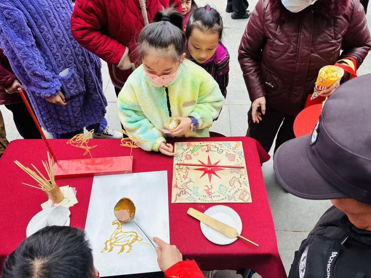 “古韵新味赏元宵”区域,糖画艺人以勺为笔、以糖为墨,顷刻间勾勒出栩栩如生的骏马、蝴蝶等造型,引得孩子们惊叹连连;传统爆米花机的“砰”然巨响,更勾起许多居民的童年回忆,大家凭券兑换品尝,赞不绝口。手工体验区内,“骏马迎春灯”和“福韵清风扇”制作同样人气高涨。亲子家庭齐动手,拼装马年花灯、拓印吉祥福扇,一盏盏花灯点亮童真梦想,一把把福扇扇出新春祝愿,现场洋溢着温馨和谐的亲子时光。