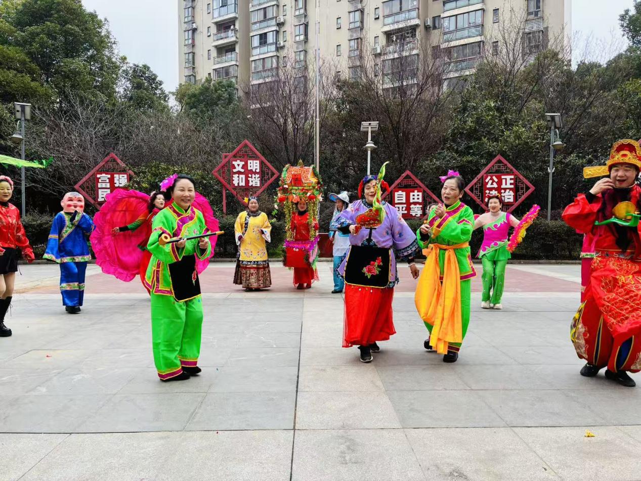 社区文艺团队倾情呈现汉剧经典选段,划旱船、采莲船等传统民俗节目轮番登场,演员们身着彩衣、手持船桨,模拟水中行船的轻盈姿态,诙谐生动的演绎将现场气氛一次次推向高潮,让居民在家门口近距离感受非遗文化的独特魅力,唤醒记忆深处的年味乡愁。