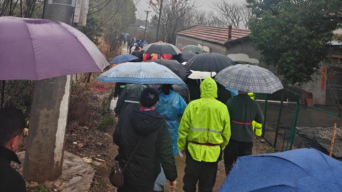 还未抵达康都庙,热闹气息已扑面而来。距离寺庙2公里,道路两侧彩旗招展。距庙500米,连绵的鞭炮声不绝于耳。再走近250米,震天的锣鼓声夹杂着此起彼伏的欢呼声远远传来,瞬间将人拉入元宵的热烈氛围。尽管天空飘着小雨,现场依旧热闹非凡,人们扶老携幼,有的撑伞、有的穿雨衣,香火味、烟火气与锣鼓声、欢呼声交织在一起,不绝于耳。