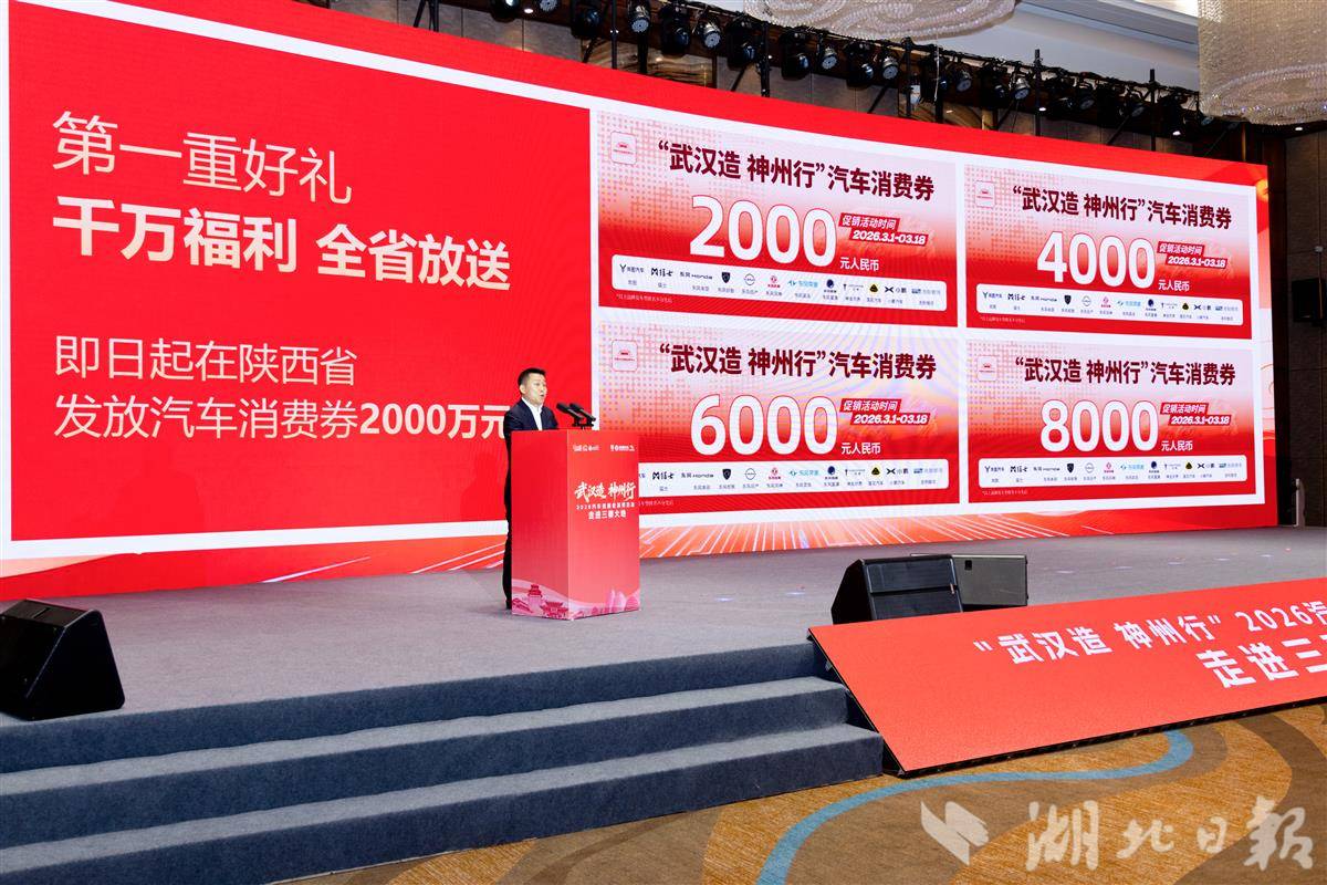 湖北日报讯(记者杨千帆、通讯员蒋秋雨、李岿)3月1日,“武汉造 神州行”2026汽车巡展促消费活动·走进三秦大地专场在陕西咸阳举行。作为新春省外首站,东风公司、吉利汽车、上汽通用等车企,带来岚图、猛士、奕派、东本、别克等17款“武汉造”“车谷造”新能源汽车品牌作产品及品牌巡展推介,并宣布车谷汽车消费券落地咸阳,实现“一券全省通享”。