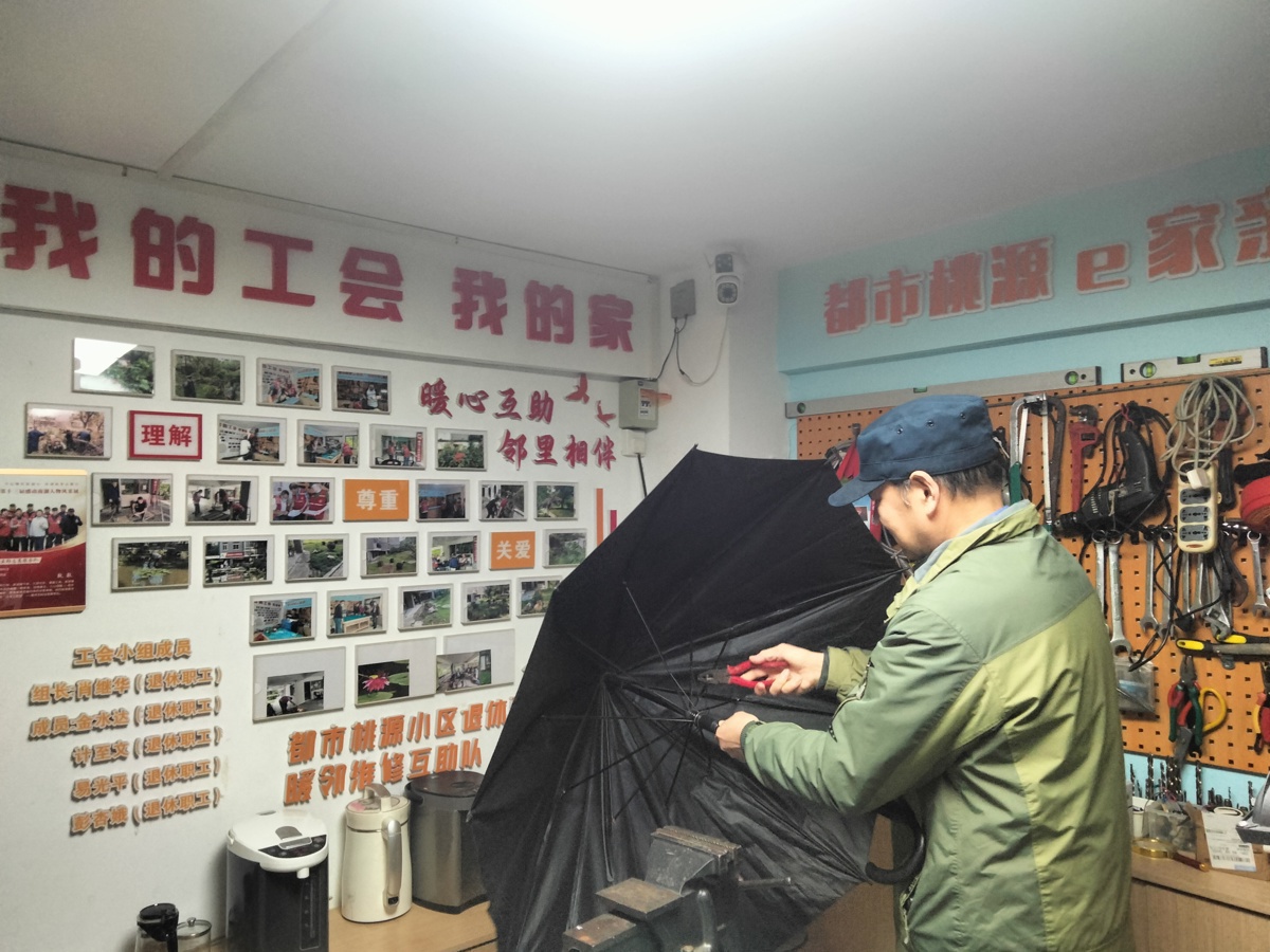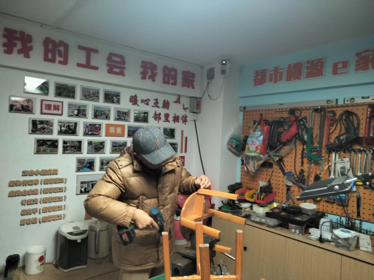 “过年东西坏了,外面师傅都放假了,还好咱们小区有工具共享空间,志愿者天天守着,太贴心了。”武昌南湖街道都市桃源社区都市桃源小区的王爹爹,抱着修好的木椅笑得合不拢嘴,一个劲地给小区的志愿维修服务点赞。