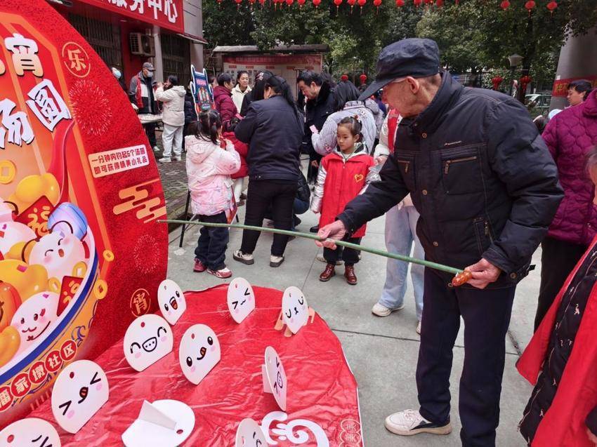 欢乐钓汤圆,清廉伴团圆。“欢乐钓汤圆”作为热门环节,吸引了各年龄段居民参与。大家手持鱼竿,在1分钟时限内钓取仿真汤圆,现场氛围紧张又欢乐。圆润的仿真汤圆,既象征团圆美满,更承载着社区对居民“廉洁修身、和睦相处”的美好祝愿,让大家在趣味中悟清廉、享团圆。