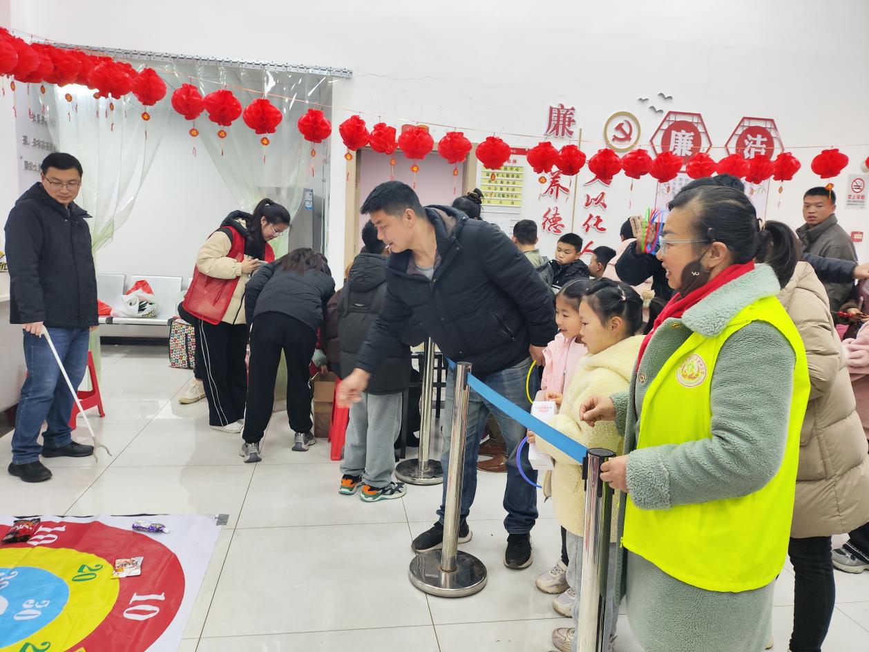 活动现场张灯结彩、喜气洋洋。红彤彤的灯笼高高挂起,五彩斑斓的灯谜纸条随风摇曳,套圈奖品区堆满大米、食用油、毛巾、香皂等实用好物,处处洋溢着浓厚的节日氛围。老人们早早来到活动现场,彼此寒暄问候,脸上满是期待的笑容,热闹的气息瞬间填满整个大厅。