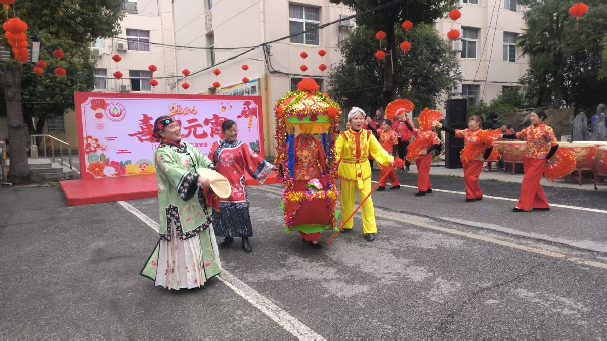 活动当天,老年公馆内张灯结彩,大红灯笼高高挂起,五彩旗帜迎风飘扬,处处洋溢着喜庆祥和的节日氛围。社区失能老人、院内入住长者、阳逻街老年大学学员、长江新区广场舞协会成员,以及机构工作人员、志愿者、社工和医护人员等欢聚一堂,共庆佳节、共话安康。