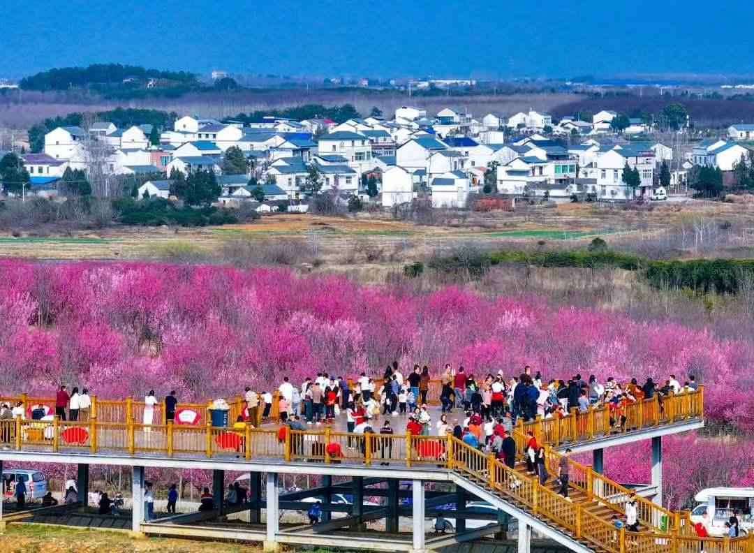 该县还有季店乡桃画山谷、丰山镇七仙红桃基地,以“赏花+采摘+露营”模式,延伸桃产业链条,单季桃花节吸引游客数十万人次,采摘游成为村民增收新渠道。