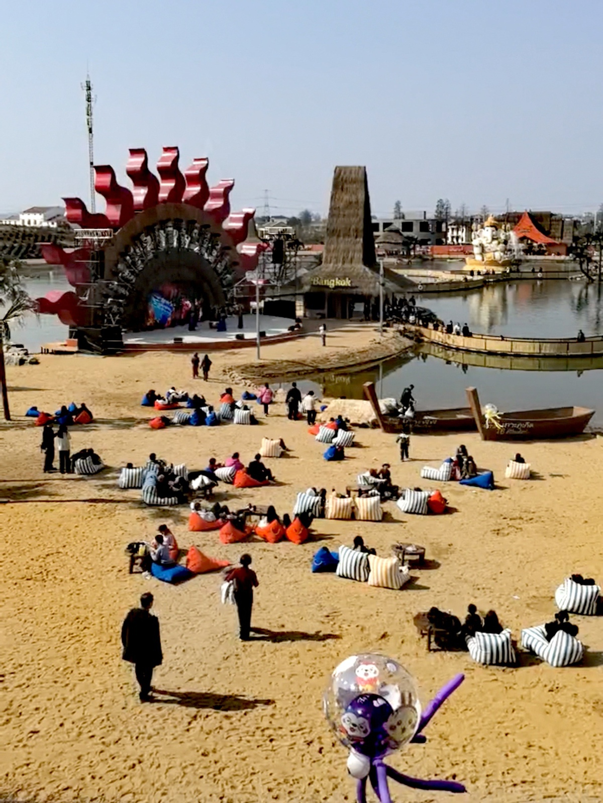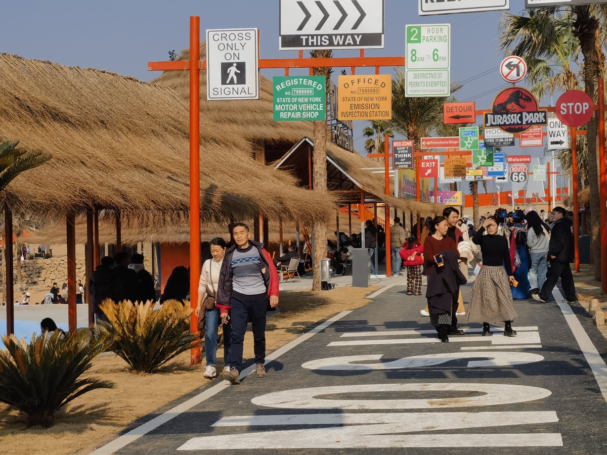 水乡曹砦东南亚风情园是孝感市首个沉浸式东南亚主题休闲娱乐综合体,项目占地400亩,规划八大主题功能区,集餐饮、游乐、住宿、体验于一体。为保障开园秩序,当地统筹设置10个临时停车场,提供2000余个车位,组织工作人员与志愿者做好引导服务,让游客玩得舒心、游得顺畅。