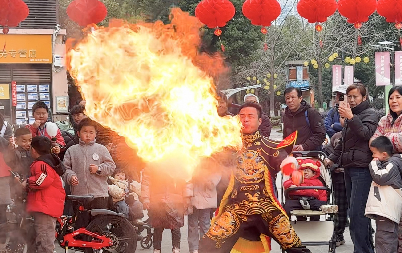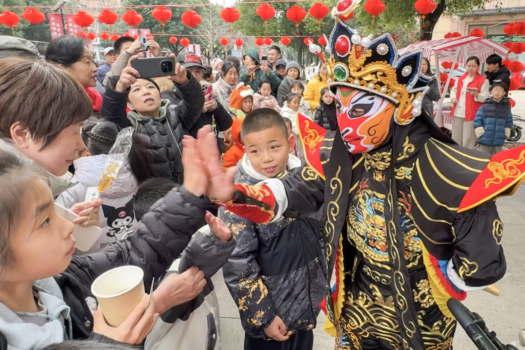活动在热闹的开场仪式中拉开序幕,精彩的巧棒戏龙船、非遗变脸、喷火表演轮番上阵,沿着玫瑰大道一路行进。锣鼓声声、节奏明快,变脸艺人脸谱瞬息变幻、喷火绝技气势十足,引得居民阵阵惊呼、掌声不断,瞬间点燃全场气氛,大家纷纷驻足观看、拍手叫好。