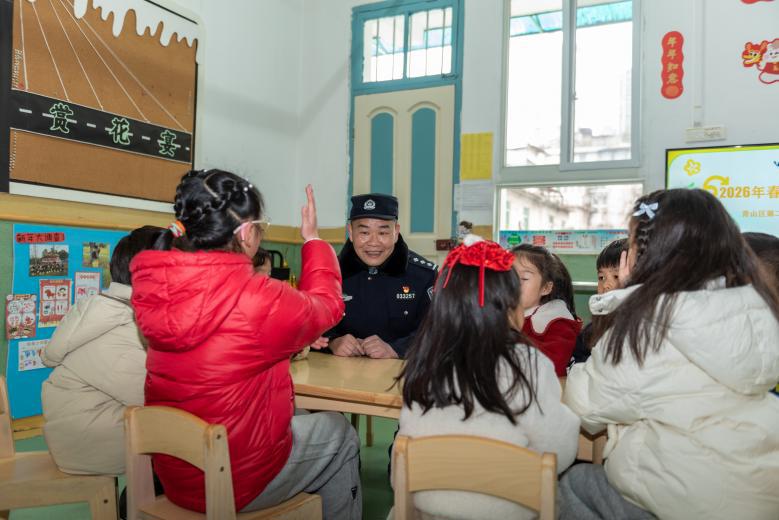 在强化安全检查的同时,注重安全教育与服务的生动性、实效性。在青山区第二幼儿园,民警用活泼的语言为孩子们带来安全第一课,在互动中普及安全常识。