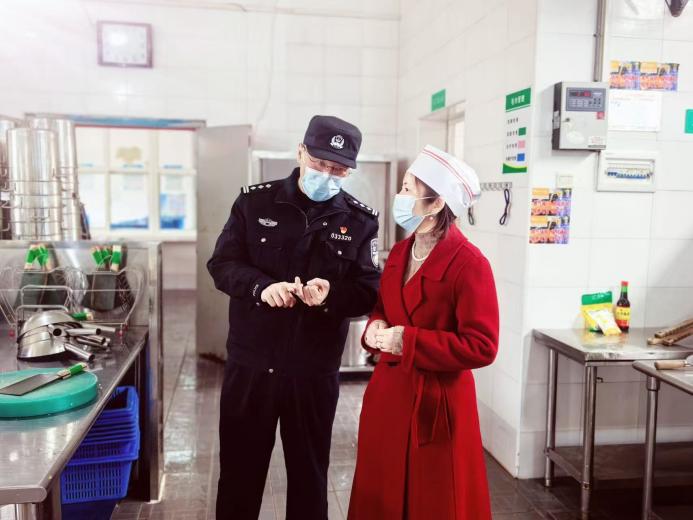 武东街派出所所长潘峰叮嘱食堂管理人员
