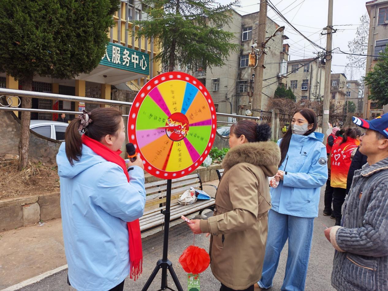 游园体验环节精彩纷呈,廉洁文化与民俗趣味无缝衔接。居民们率先驻足于融入“莲”“廉”意象的元宵打卡墙前拍照留念,在定格节日喜悦的同时,感受廉洁文化的无声浸润。赏灯猜谜区人气爆棚,一条条灯谜既涵盖传统元宵民俗、诗词典故,又巧妙融入清廉知识与反诈常识,居民们三五成群、争相竞猜,在趣味互动中学习政策法规、增强安全意识。一旁的“清廉问答大转盘”前同样排起长队,大家转动转盘、抢答问题,在轻松愉悦的互动中深化对清廉社区建设的理解,让“清风”理念入脑入心。