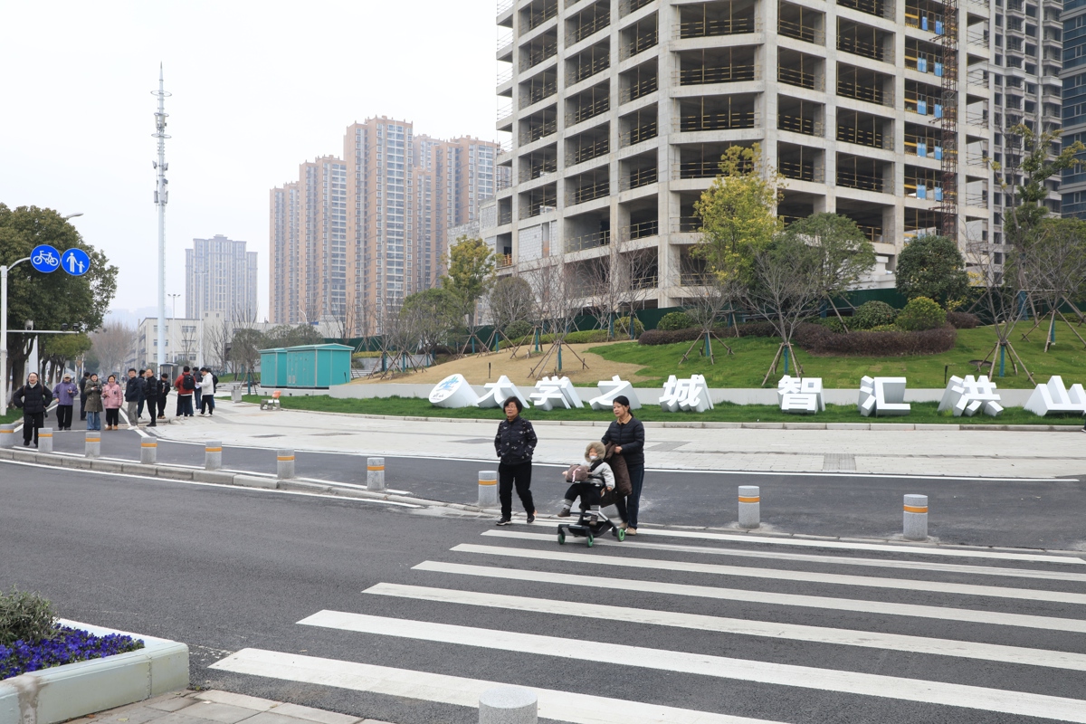 记者在现场看到,道路两侧,崭新的休闲座椅整齐排布,造型简约的分类垃圾桶点缀其间,路灯、绿化、景观小品精致协调,每一处细节都透着城市精细化管理的温度。绿化景观全面升级后,沿线绿化带重新铺设青翠草皮,栽植各色花卉绿植,道路端头节点打造出精致小微景观,一步一景、满目清新,让市民出行赏心悦目、心旷神怡。