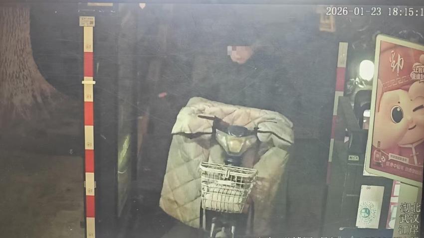 百步亭所民警张创、石柏林带领辅警胡可、王宇翔调看视频发现,1月23日18时许,一名头戴黑色帽子的男子溜达到架空层,四下张望后,撬开车锁,骑上车消失在夜色中。