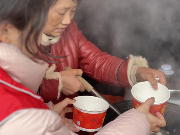 锅里的汤圆翻滚,热气腾腾。“甜!”一个骑手小哥咂咂嘴,“平时都是给别人送餐,今天有人给咱端汤圆,心里头热乎。”