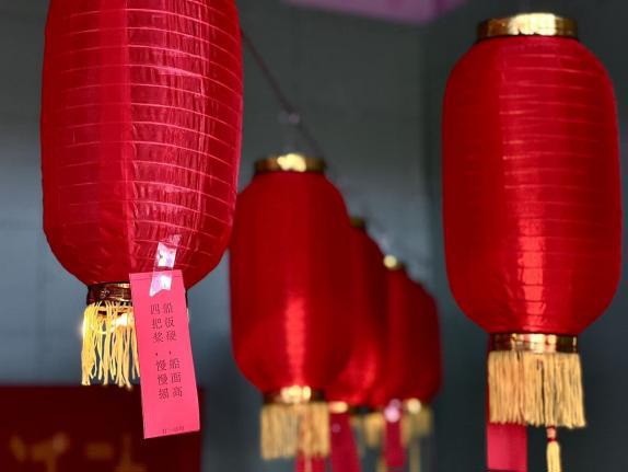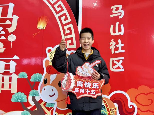 “一直和党心连心……”百余条灯谜悬挂在红灯笼下,谜面既有传统字谜,也融入了新时代特色,引得居民和商户纷纷驻足。猜中谜底的居民拿着灯谜条兑换小礼品,笑声不断。现场还有小朋友们亲手制作小花灯,更加增添了节日氛围。