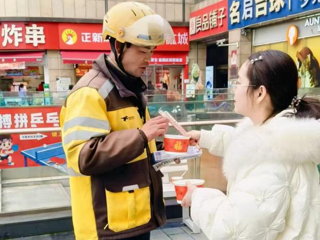 “平时总在路上跑,今天能停下来吃碗汤圆、抽个福签,真有节日氛围。”骑手小王抽到“爆单签”,小心翼翼地收进口袋,“干我们这行,爆单是共同的心愿,社区有心了!”